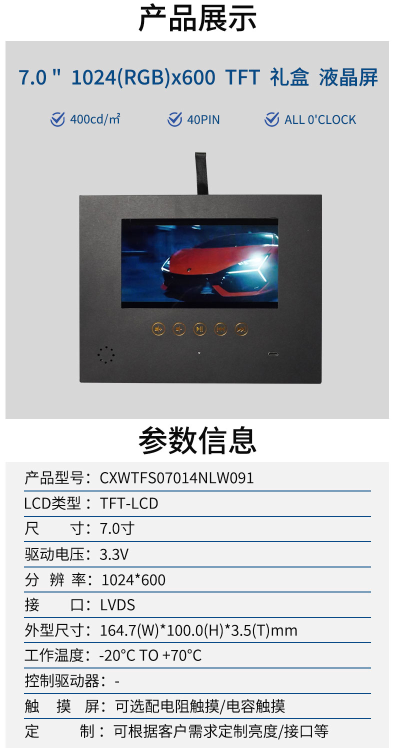 7.0寸包装盒屏
